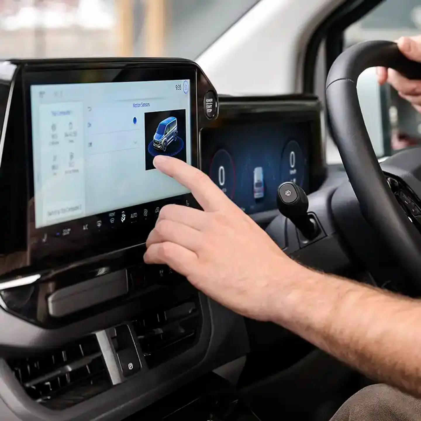 The Transit Custom van is equipped with advanced driver tech, including a 180-degree split view rear camera, front and rear parking sensors, Reverse Brake Assist6 7 and Lane Keeping Aid6, all designed to keep you and your cargo secure.