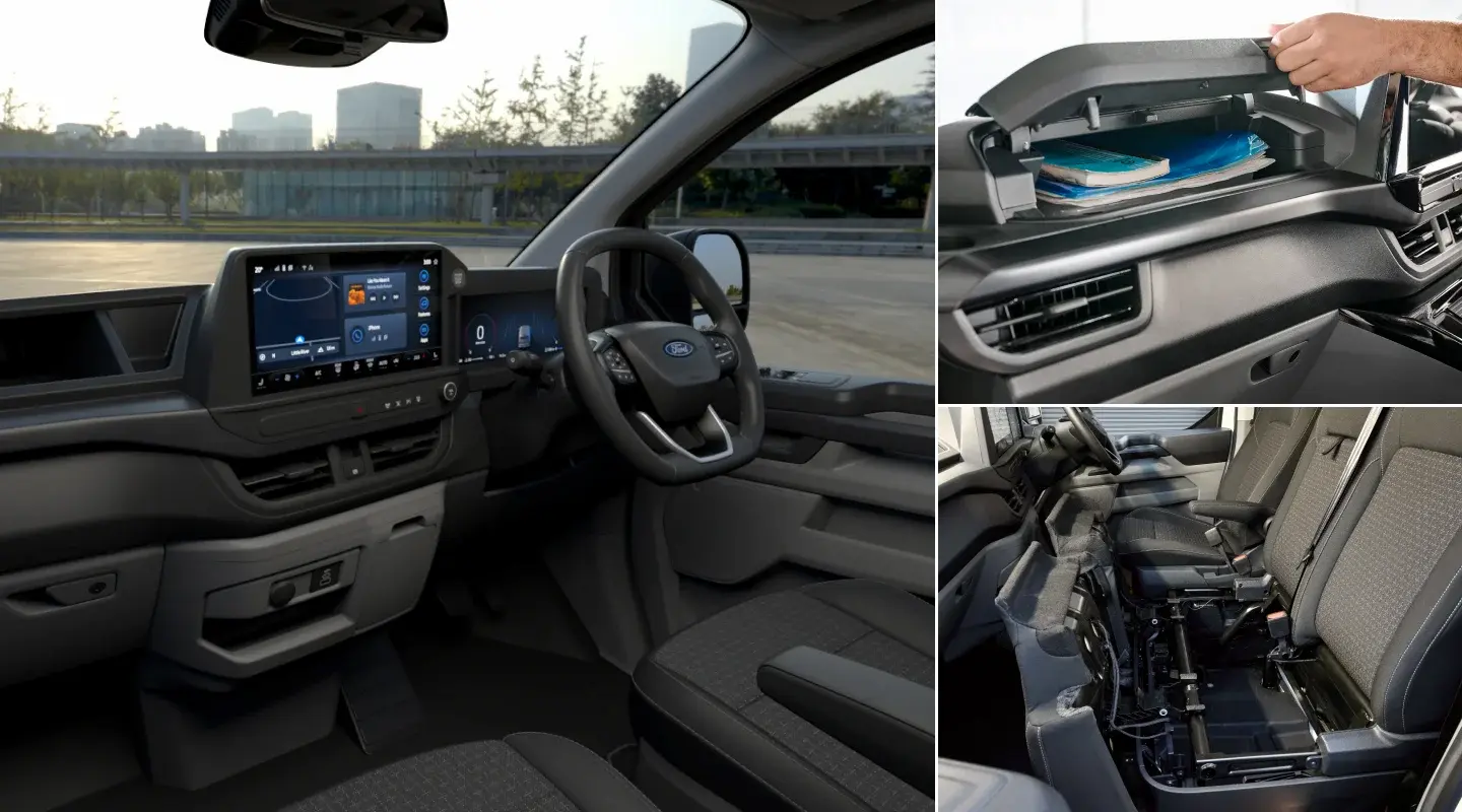 The Transit Custom van interior has been designed with comfort in mind, including a more spacious cabin and increased storage. Additionally, the independent rear suspension ensures a smoother ride for your load and helps improve traction.
